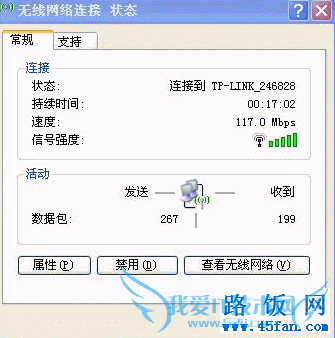 2)双击无线网络连接,进入无线网络连接状态界面。