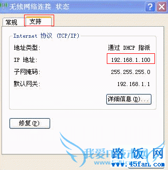 三、此时查看无线连接是否获取到了IP地址,如下图,连接成功后动态获取到一个IP地址