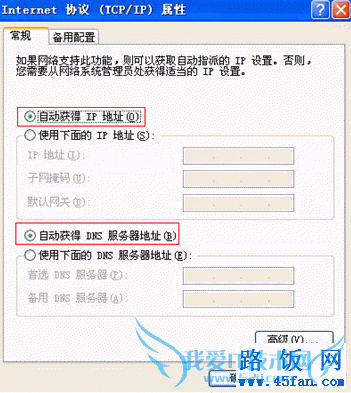 4)选择无线网络连接的“TCP/IP属性”,并将其IP地址和DNS改为自动获取。