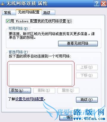 XP系统:“无线网络连接”-“属性”-“无线网络配置”,将“首选网络”框中内容清空。