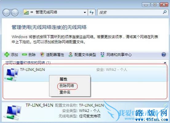 Vista系统:“网络和共享中心”-“管理无线网络”,将其中内容清空。