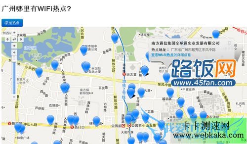 2:耐心等待,然后就可以打开查询城市的地图,你会看到地图上很多红色的汽泡,这就代表这些地方有WIFI接入点。如下图所示: