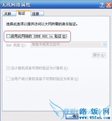 “无线网络属性”中选择“关联”,在“网络验证”中查看一下您的系统是否支持路由器中设定的加密方式。