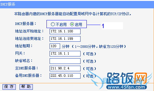 2、进到路由器WEB界面后,点左侧的“DHCP服务器”进入DHCP服务设置界面并启用该服务,如下图所示: