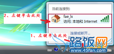 3、查看无线网络连接状态,如果想查看此时无线网卡的连接情况,我们可以点击任务栏右下方的本地连接属性查看相关信息。如下图所示: