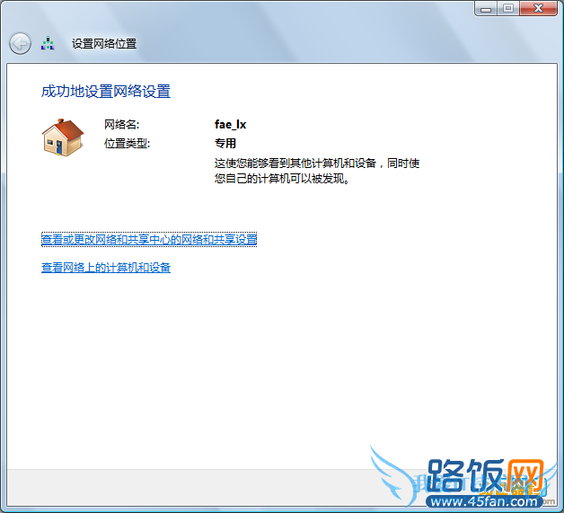 选择“家庭”之后本次的无线网卡配置的过程就圆满结束。接下来您就可以方便的通过无线方式上网。