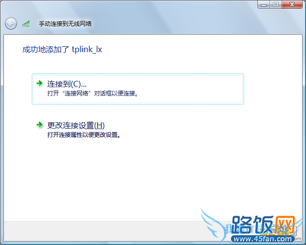 此时点击“下一步”则成功的创建了一个无线配置文件。如下图所示: