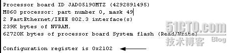 查阅资料我们知道路由器为了决定OS(操作系统)的位置,启动装在程序要检查路由器的配置寄存器。我们可以通过命令:Router#show version来读到这个值。