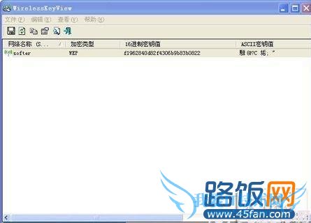 第四步:当我们在本地保存了WEP加密信息的话该软件会马上提取出相关密钥值,直接显示出来非常直观。这样我们就可以按照该密钥去设置新的计算机来连接WEP加密的无线网络了。