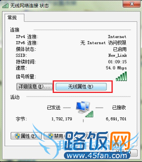 点击上图中的“无线属性”,弹出如下所示的对话框: