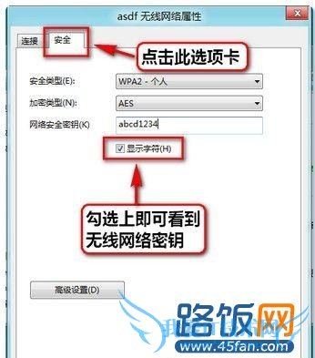 答:在出现的界面选择“无线属性”, 打开“安全”选项卡,勾选上“显示字符”,即可查看到无线连接密码。 另外还有一种打开无线连接属性的方法:点击右下角的无线网络图标,在无线网络列表里面已连接上的无线网络名称右击,选择“查看连接属性” >>详细