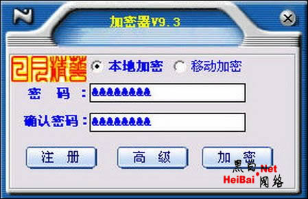 程序提供了“本地加密”和“移动加密”两种方式,在此我们可以根据需要选择。如果给电脑上的文件夹加密,在此单击“本地加密”,随后在下面的密码窗口中输入密码和确认密码,随后单击“加密”按钮,这样即可将文件夹进行加密,加密速度非常快。