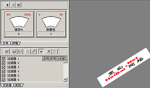 然后大家陆续添加其他操作的过滤器,一共能添加40个过滤器(不过够了)。方法和添加第一个过滤器时一样,也就是每个过滤器的包头的第一个字节不一样而也,其他都和第一个过滤器一样,当全部操作的过滤器都添加完的时候,把这些过滤器前面的“勾”全都打上。再按下那个ON的按钮,过滤器全部成灰色了,也就启用过滤器。如图10