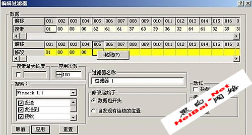注:数据里搜索项和数据里修改项,它们前面4个字节的包头一定要相同,不然的话,整个过滤器就起不到作用了。最后点击应用。如图9