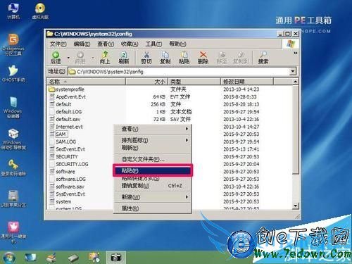 6、在这个文件夹里面,右键“粘贴”,将之前复制的SAM文件拷贝到这个文件夹。