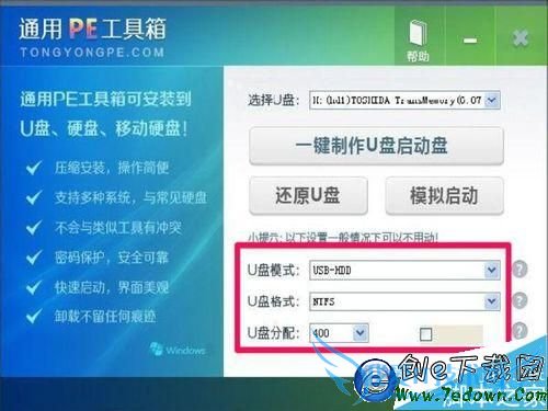3、当U盘选择好后,还要设置一些参数,如U盘模式,U盘格式等等,如果不懂,可以默认,否则会引起启动U盘不成功。