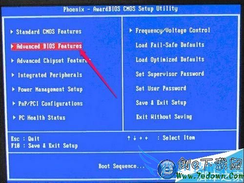 2、如果是老式的BIOS,也会有很多种,这里只介绍最普遍的一种,一般都是按Del或F2,F10,ESC等等进入BIOS,进入后,选择“Advanced BIOS Features”这一项,按Enter回车。