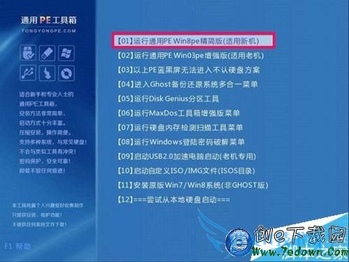6、重启进入启动U盘后,在通用PE工具箱启动U盘中,选择“运行通用PE Win8pe精简版这一项”,老式机,选择PE Win03pe增强版这一项,即可进入PE。