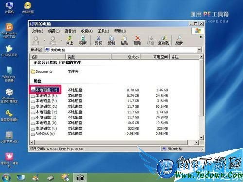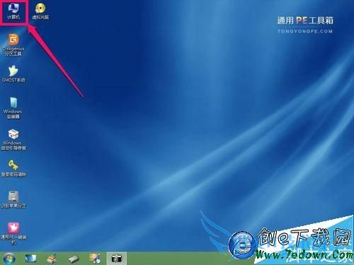 1、进入PE系统桌面后,先选择“计算机”快捷图标,打开它,进入磁盘分区。