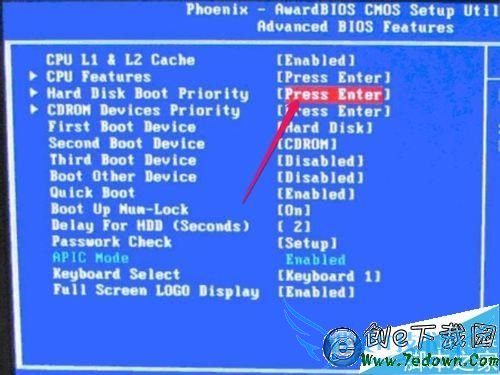 3、在下一个窗口,选择“Hard Disk Boot Priority”这一项,按Enter回车。