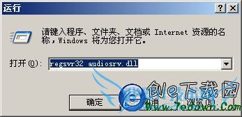 1、重新注册音频动态连接库。按“WIN+R”打开“运行”窗口,输入:regsvr32 audiosrv.dll命令后按回车运行。
