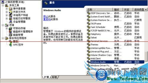 5、此时到服务管理里,开启你的Windows Audio服务,