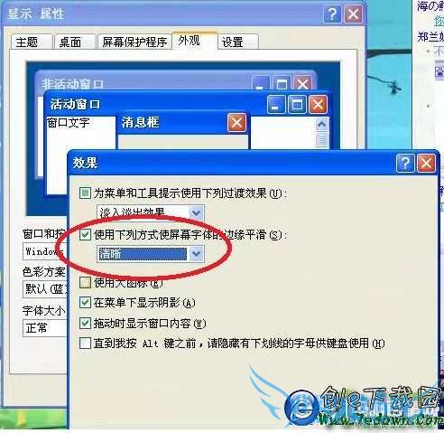 XP发生模糊这一问题的时候,按第一段就可以设置,WIN7发生这问题的时候,大概就是第三段的设置方法就能解决,第二段当然优先使用,看的顺序是图片在上,附带的文字说明在图片下面: