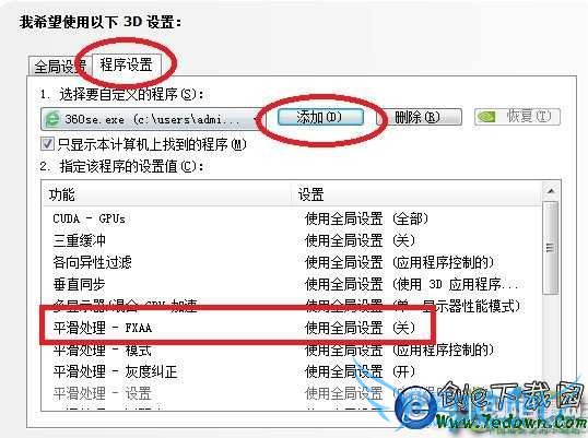 有童鞋不想打乱全局设置,那就可以点击程序设置,然后点击添加360安全浏览器,进行例外设置。