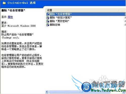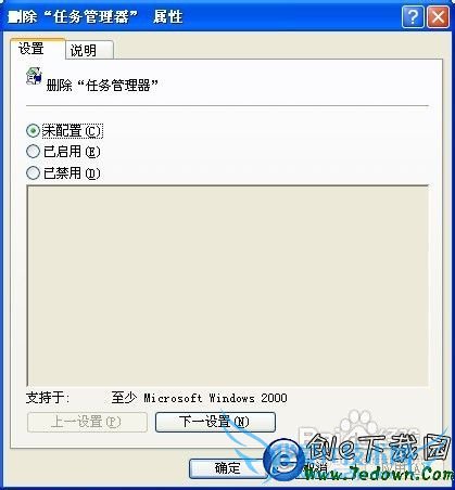 5、如果还是不行就可以试试最后个办法了。 点击:开始→运行→输入gpedit.msc 然后在用户配置→管理模板→系统→CTRL+ALT+DELE选项。最后在左边找到“删除任务管理器”双击打开,设置为未配置,或者禁用即可。