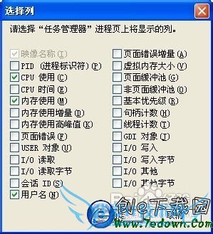 3、如果还不行打开任务管理器, 然后切换到进程, 然后点击上面的查看- 选择列。把用户名前面的√打上就可以恢复!