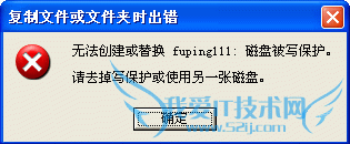OK,现在双击“U盘只读.reg”,再插入U盘从本机复制文件时,系统就会出现图2所示。