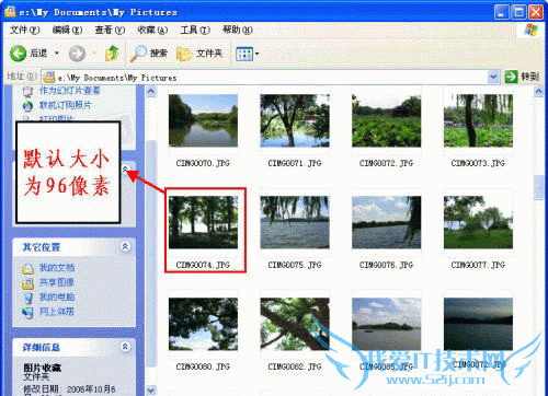 第三步:点击左边树型列表中“资源管理器”前面的+号,单击“缩略图”,这时我们可以看到可供我们更改的有两项(图1),一项是缩略图的质量,一项是缩略图的大小。更改后的缩略图的质量决定生成的thumbs.db文件的大小,缩略图的大小决定以缩略图方式查看时显示缩略图的速度。可以根据需要作适当修改。这里建议图像质量不要修改的太低,缩略图大小改为48就可以了,太小就看不清了(2是修改前缩略图显示大小,图3为修改为48后显示效果)。