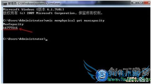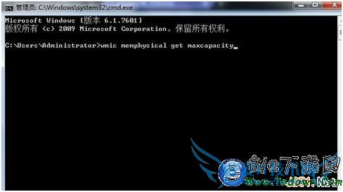 3、在命令窗口输入“wmicmemphysical get maxcapacity”然后敲下回车键。
