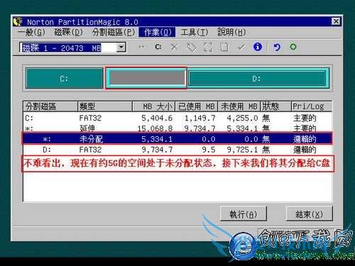 这时,不要忘记点击“执行”按钮来执行对磁盘分区的调整工作。