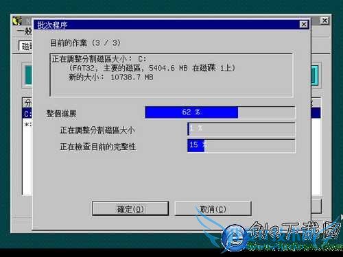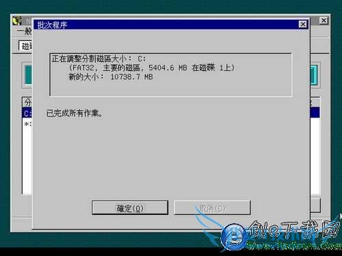 不难看出,C盘新的大小又原来的5404M变成现在的10668M。单击“确定”按钮以确认刚才的操作。现在来看看调整后的磁盘容量分配情况。