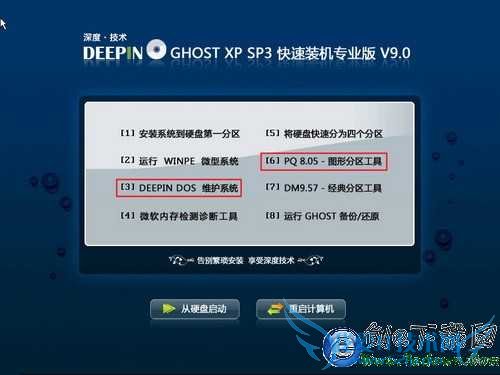 用光盘或软盘(或其他引导工具)引导电脑进入DOS状态,即纯命令行操作的黑屏白字状态,非windows下的CMD。如果你有专业的工具盘,那就最好不过了,我这个光盘就是在深度论坛上下载的并刻录成光盘,有兴趣的话可以去深度论坛了解一下,这个并非今天的主题,我们还是来讨论如何使用PQMagic 8.0.5来调整磁盘分区的容量。