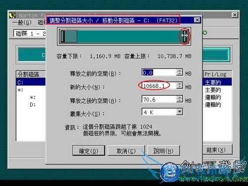 同样的方法,通过拖动滚动条来调整C盘的空间。