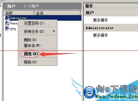 4、右击administrator,选择属性
