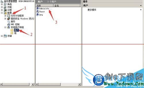 3、找到本地用户和组,然后点击用户,右边的administrator