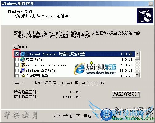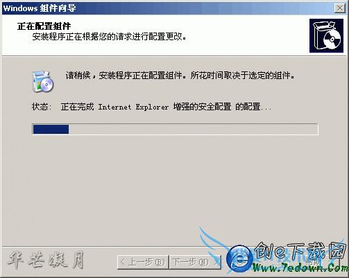 上图中,将“InternetExplorer增强的安全配置”前面的√去掉,然后“下一步”,弹出如下图的windows组件向导。