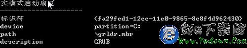 bcdedit /set {ID} device partition=C: (注:设置引导扇区文件所在的分区,grldr.mbr所在分区)