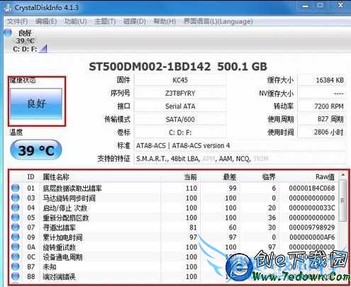 显示硬盘接口.转速.温度信息:crystaldiskinfo 中文绿色版
