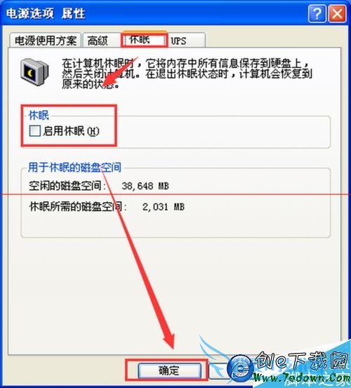 6、如果,你要开启系统的休眠功能,同样可以在”电源选项”窗口的“休眠”选项卡中,选中“启用休眠”复选框。