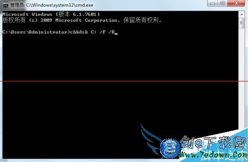 5、此时电脑重启,进入安全模式下,在dos界面,输入【chkdsk C: /F /R】