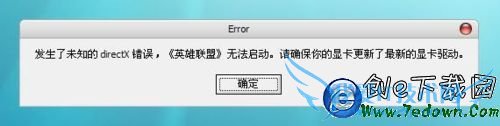 为什么设备管理器中显示显卡运行正常,而打开《英雄联盟》等游戏时依然显示“directX错误”(如下图)?