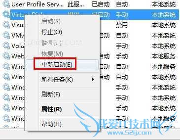 如果Virtual Disk服务是正在运行的状态,而磁盘管理器依然报错,可以把该服务重新启动(如图),然后重新打开磁盘管理(快速打开磁盘管理的方法:WIN+R 运行中输入diskmgmt.msc)
