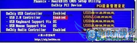 然后 进入 OnChip PCI Device(PCI设备设定),可以设置USB参数。定义分别是: