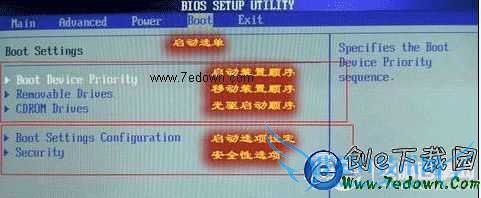 press del to enter setup,找到类似的英文就是了,看del用什么代替了就行。