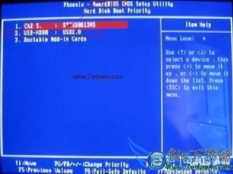Hard Disk Boot Priority(硬盘引导顺序):这个是最关键的了,一般你之前插入了USB设备后,