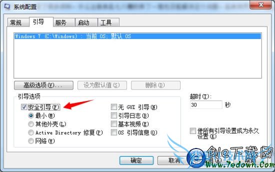 今天碰到一个客户,他的电脑只能进入到安全模式里边。Windows 7 系统,琢磨了半天,网上查了很多资料。什么注册表乱七八糟的弄了一堆也没能解决这个问题。后来突然发现 Msconfig 里边有安全引导这么一个选项。取消掉,顺利正常进入到系统了。